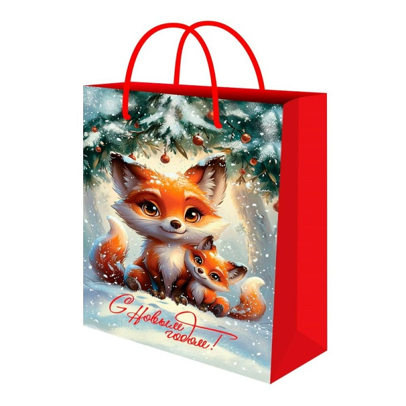 Пакет Бумажный Новогодние лисята НГ 22x31x10см (ML)