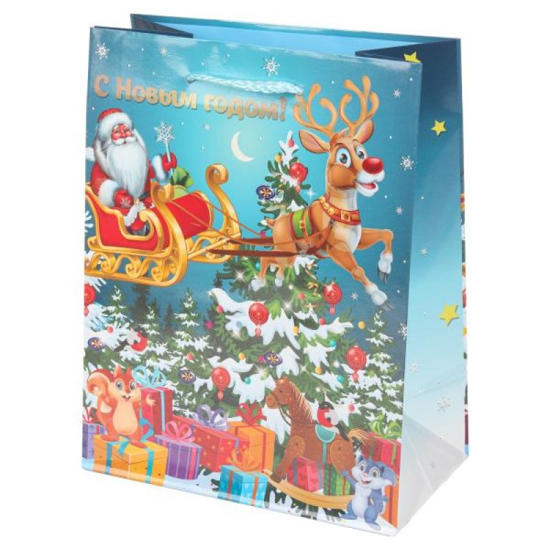 Пакет Бумажный новый год 180х230х100 мм