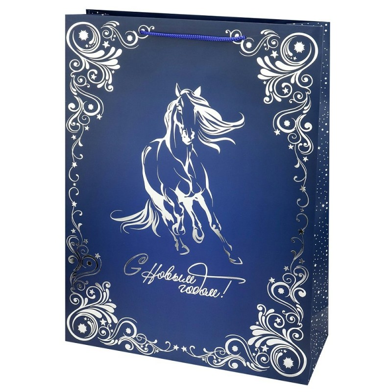 Пакет Бумажный плотный с фольгой Грациозный конь НГ 32,4х44,5х10,2см(XL)