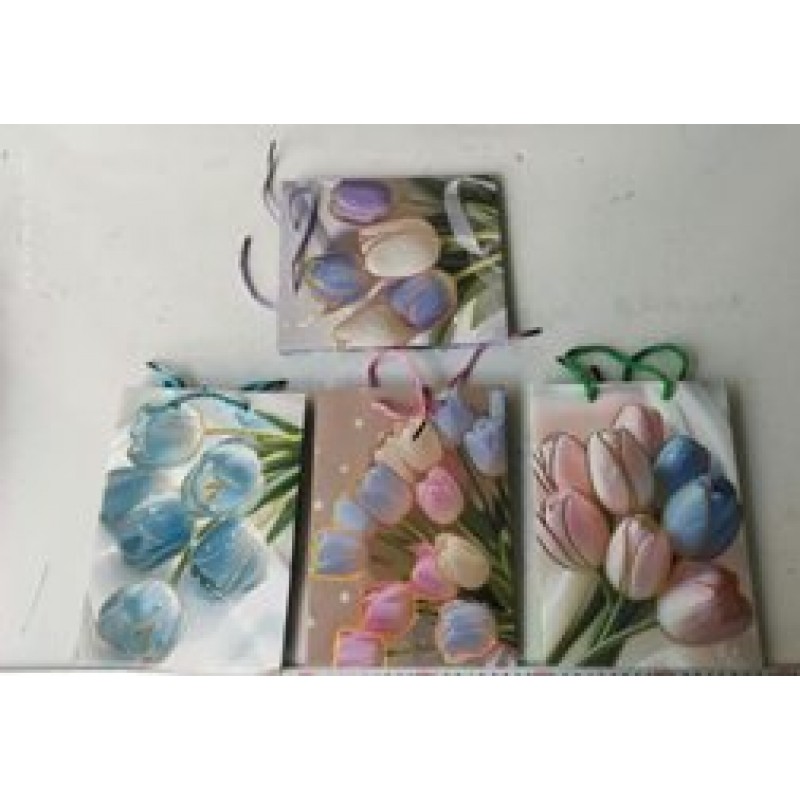 Пакет Бумажный плотный с фольгой Тюльпаны 180х230х10 мм