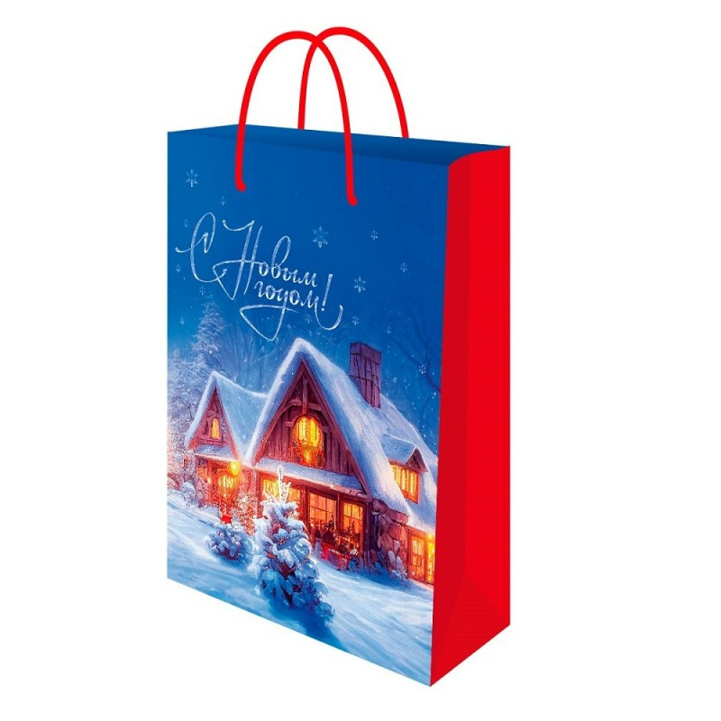 Пакет Бумажный Снежные домики НГ 14х20х6,5 см (MS)