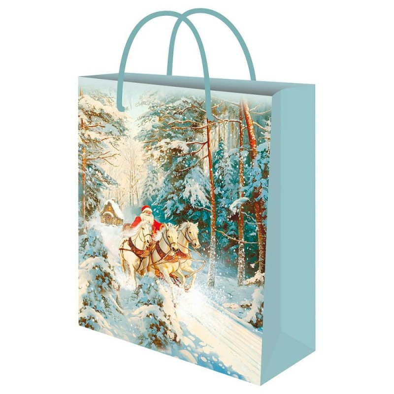 Пакет Бумажный Тройка коней НГ 18х23х8 см (M)
