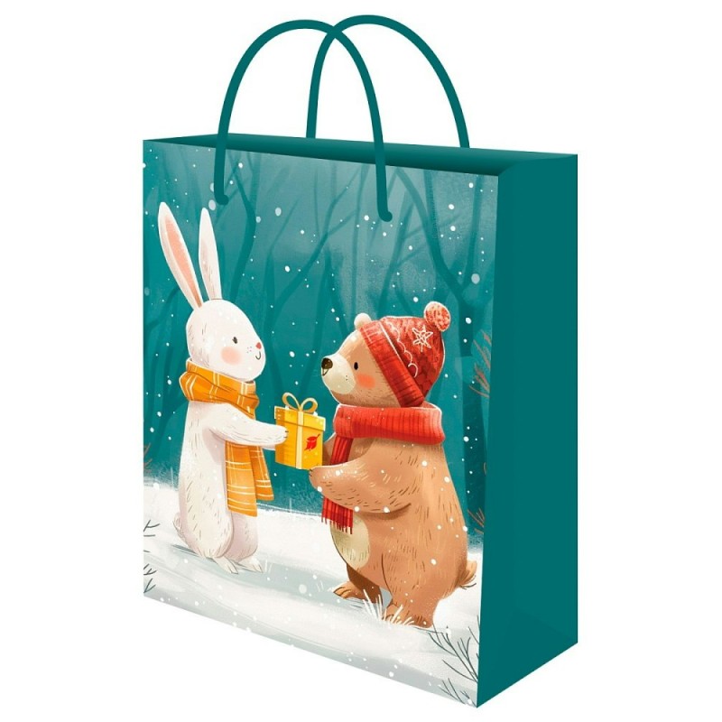 Пакет Бумажный Заяц и медведь НГ 18х23х8 см (M)