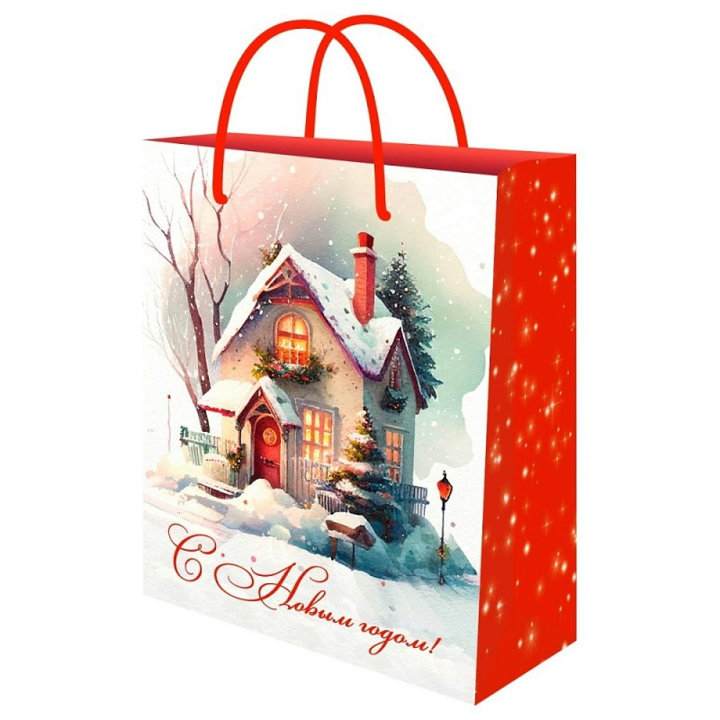 Пакет Бумажный Зимний домик НГ 18х23х8 см (M)