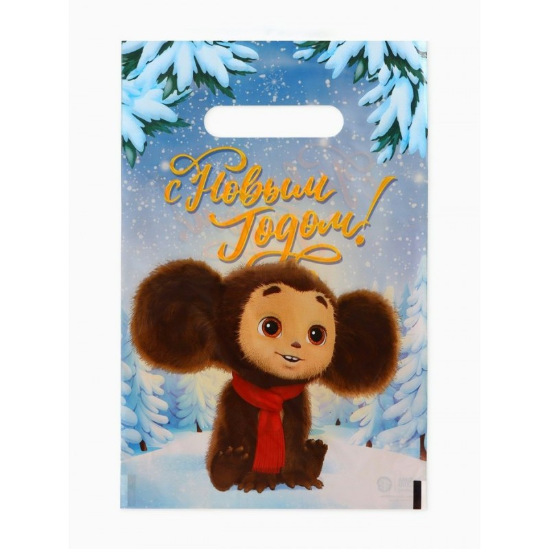 Пакет Полиэтиленовый «С Новым годом», Чебурашка, НГ 20х30(30) с вырубной ручкой