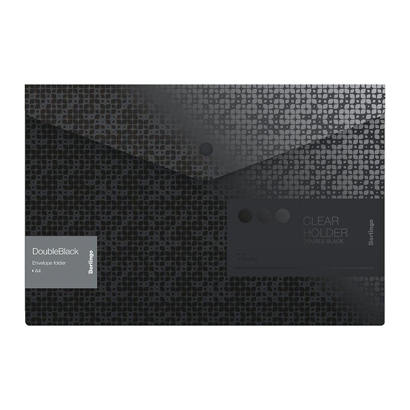 Папка -конверт на кнопке А4"DoubleBlack", 180мкм, черная, с рисунком Berlingo
