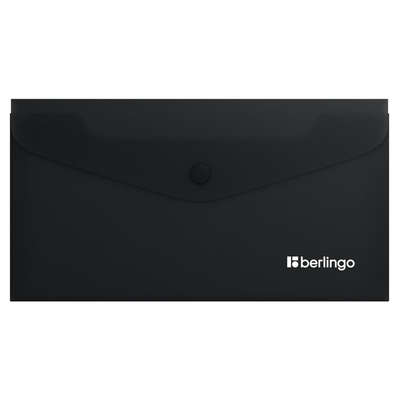 Папка -конверт на кнопке C6, "Soft Touch", 200мкм, софт-тач, черная Berlingo