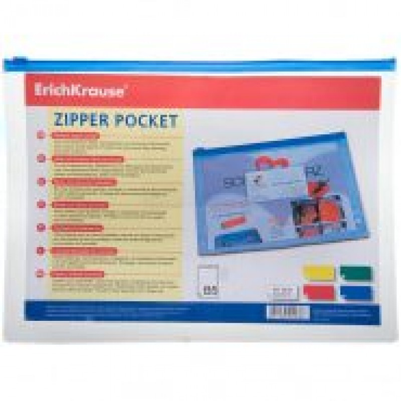 Папка на молнии А5+ зиппер"PVC Zip Pocket", B5, 180мкм, прозрачная Erich Krause