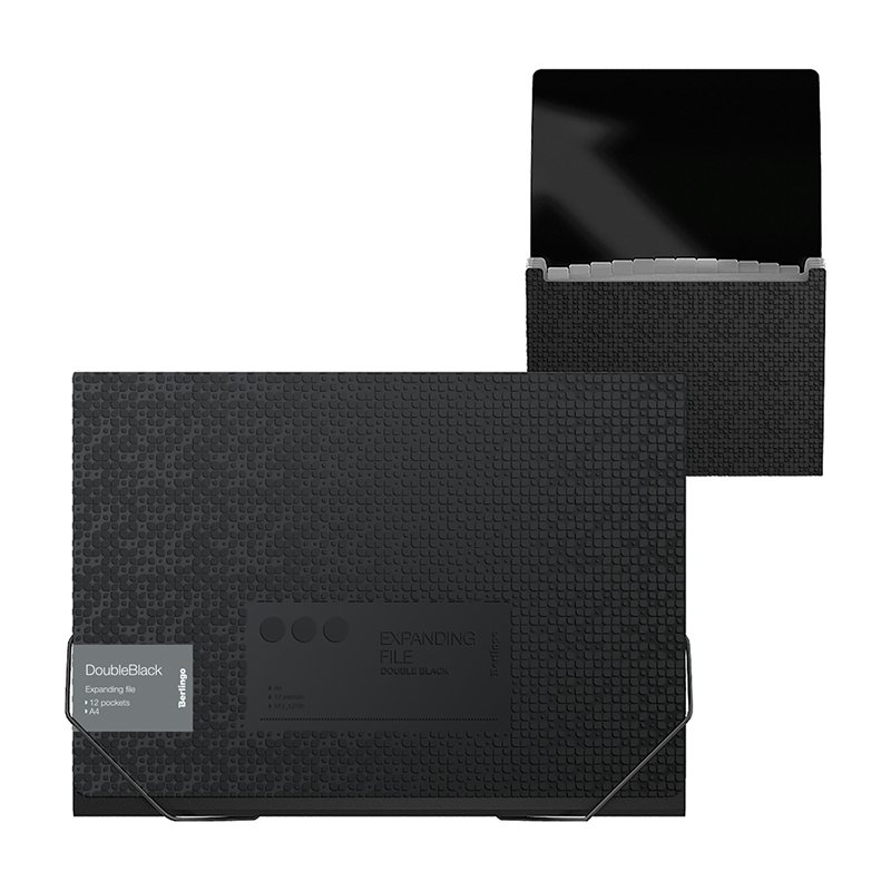 Папка на резинке А4 12 отделений "DoubleBlack" 330*240*25мм, 700мкм, черная, Berlingo