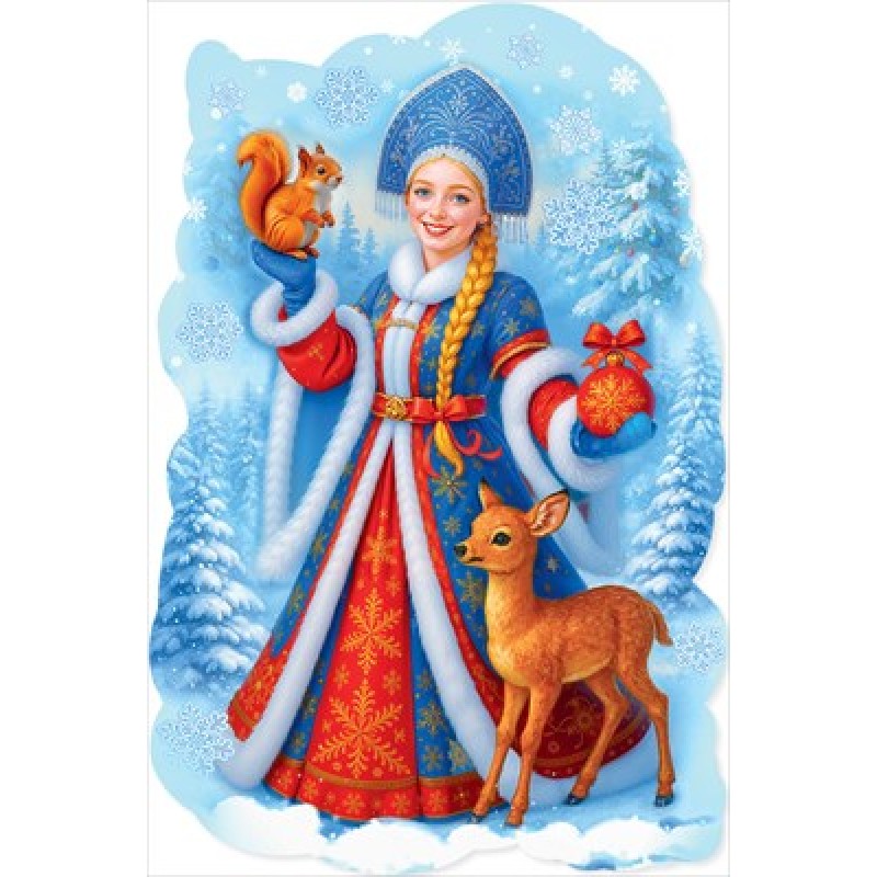 Плакат "Снегурочка с оленёнком и белочкой" 896х596 мм
