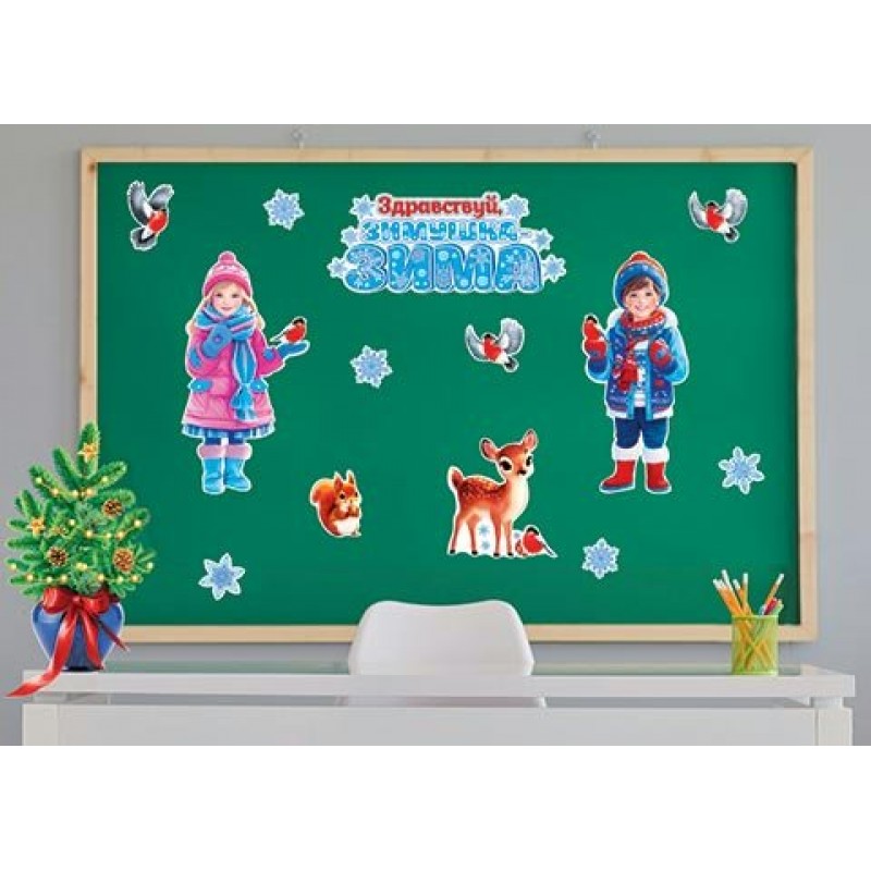 Плакат Здравствуй, ЗИМУШКА-ЗИМА! + украшения (набор) 231х432 мм
