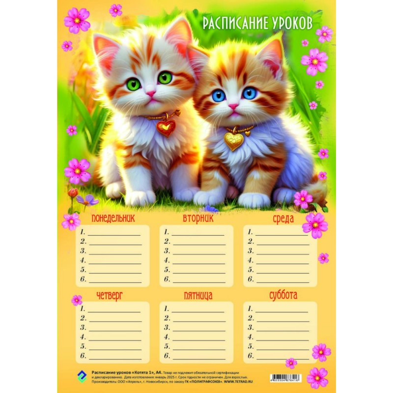 Расписание уроков А4 20*29 ,Котята Альянс