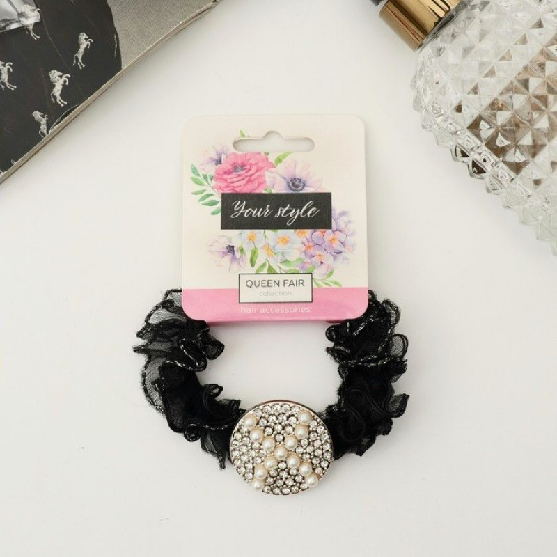 Резинка для волос "Мюриэль" круг бусины,5 см, чёрный Queen fair