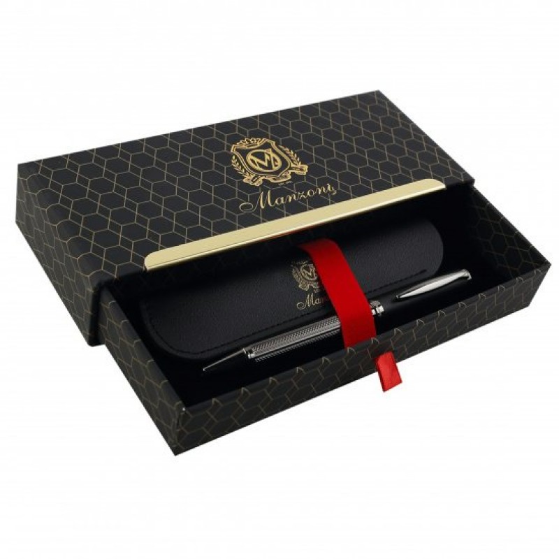 Ручка подарочная синяя шариковая,Panteon , 1 мм ,корпус круглый,металлический Manzoni