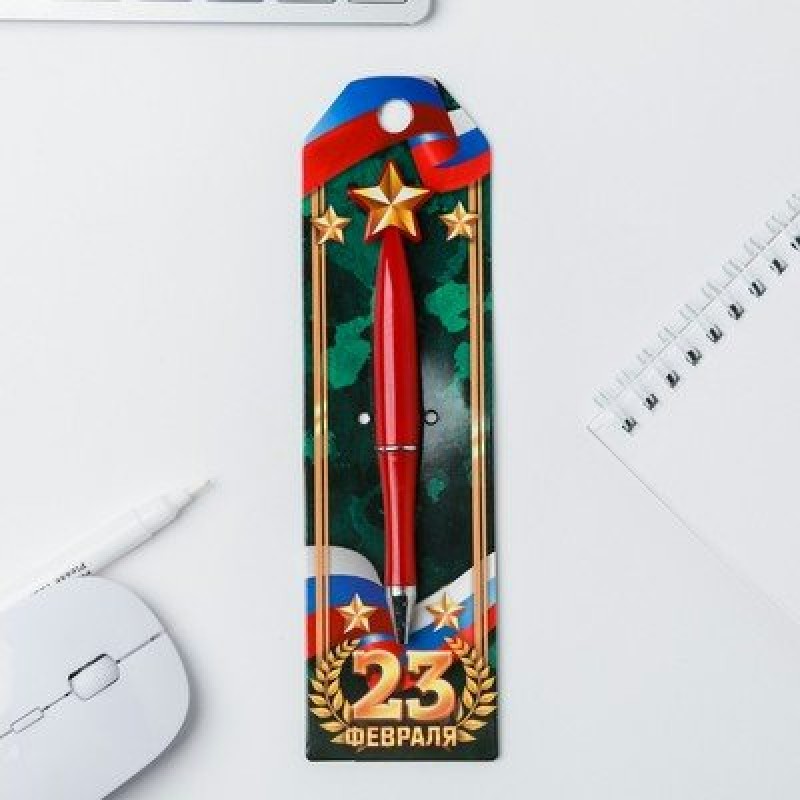 Ручка шариковая дизайн. синяя со звездой "23 февраля" Импорт