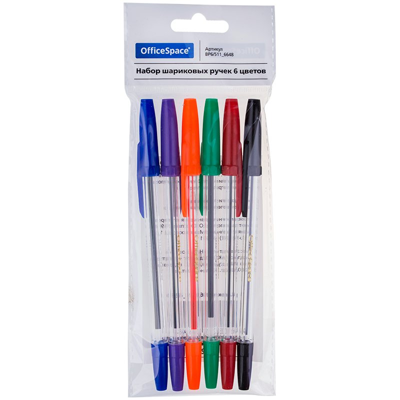 Ручка шариковая набор 06цветов., 1,0мм, европодвес OfficeSpace