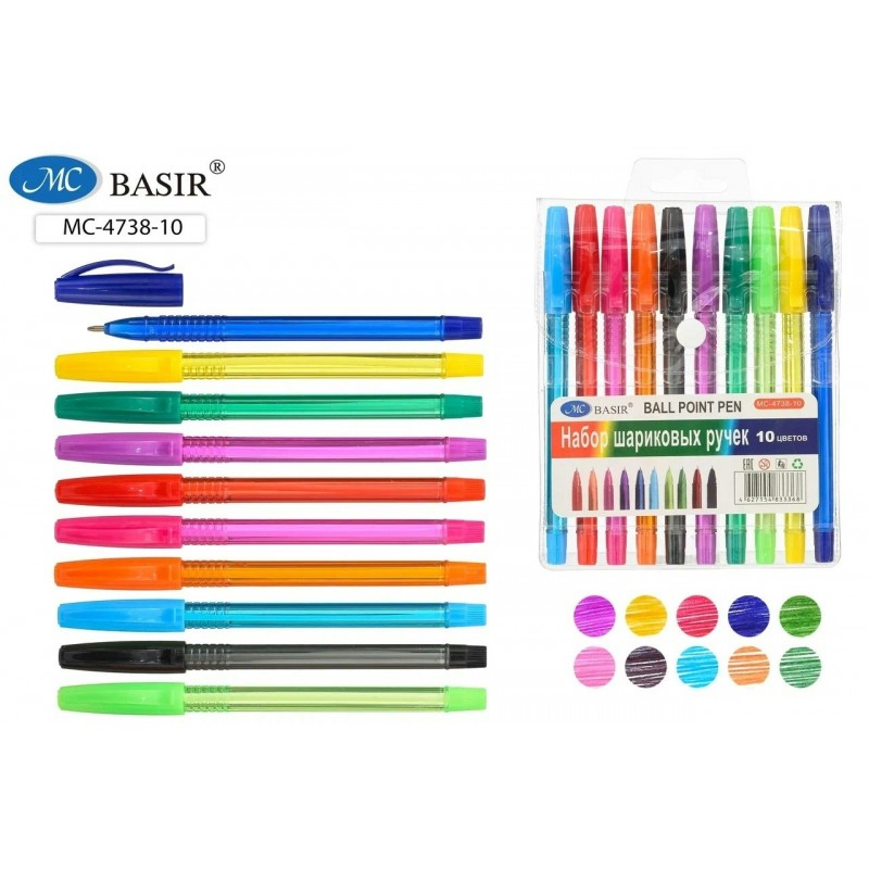 Ручка шариковая набор 10 цветов, рифлёный держатель,