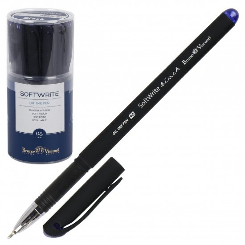 Ручка шариковая синяя "SoftWrite.BLACK" С ЧЕРНИЛАМИ НА МАСЛЯНОЙ ОСНОВЕ 0.5 мм.