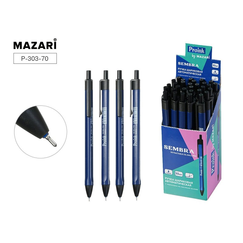 Ручка шариковая синяя автомат.SEMBRA, 0.7мм.на масляной основе, трехгранная Mazari