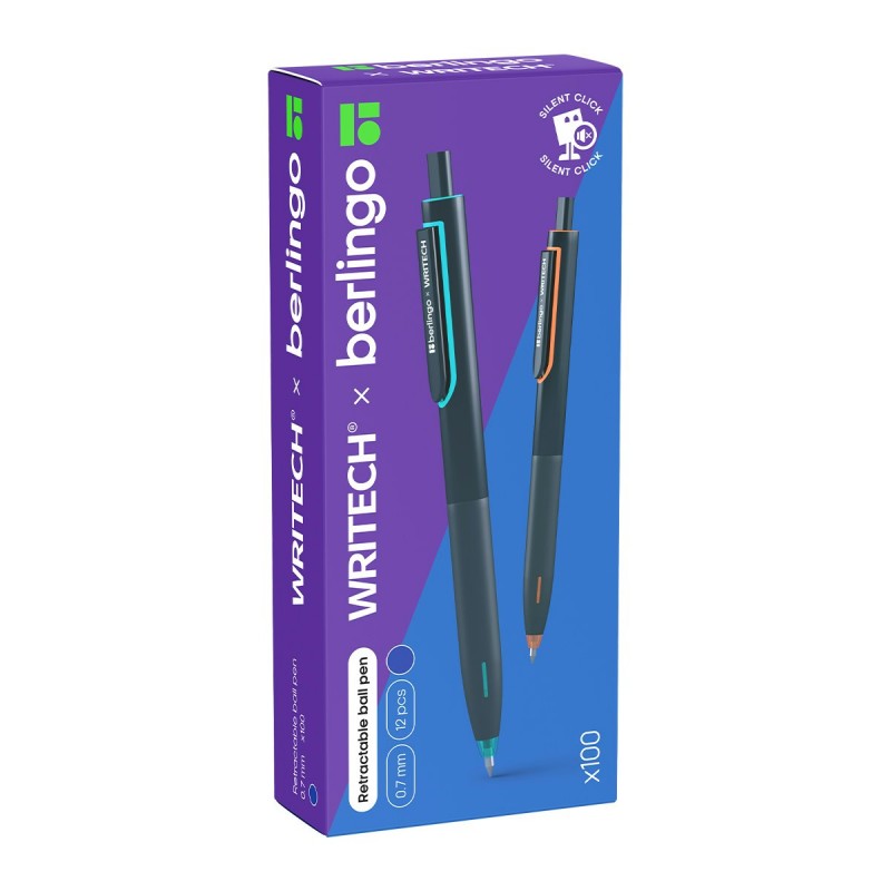 Ручка шариковая синяя автоматическая"Writech.x100" 0,7мм, silent click.(бесшумная) Berlingo