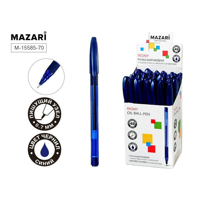 Ручка шариковая синяя RIONY, 0.7мм, на масляной основе,трехгранная, Mazari