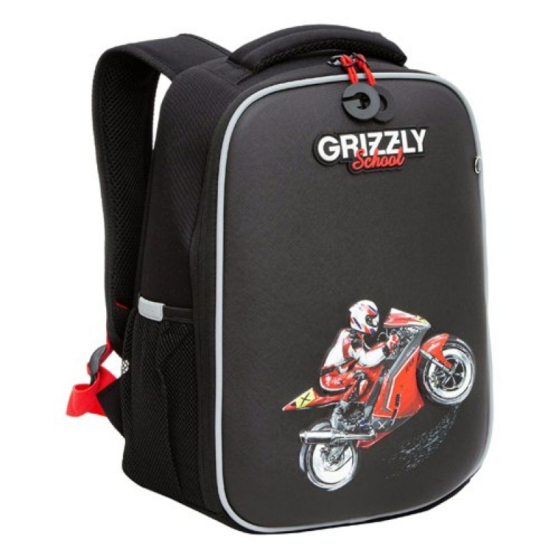 Рюкзак школьный черный,26*37*16см черный, 1 отделение, эргон.спинка,0,871 кг. Grizzly