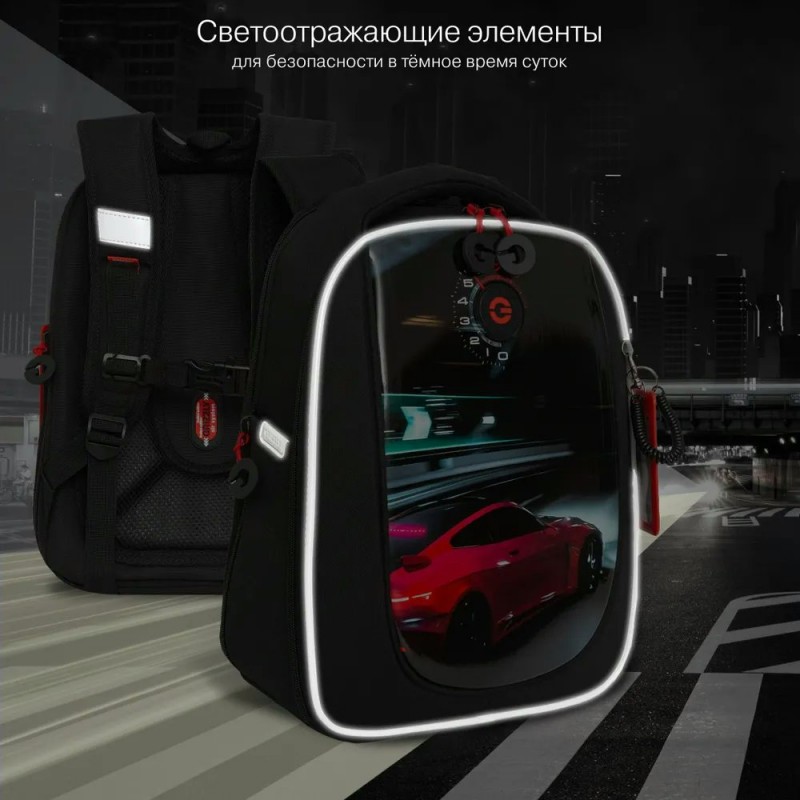 Рюкзак школьный черный,с анатом. спинкой, на ножках,971гр.до 20л. Grizzly