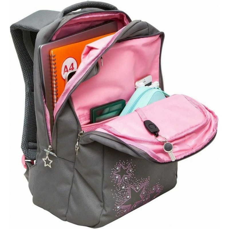 Рюкзак школьный серый,16л.,0,8кг.эрг.спинка Grizzly