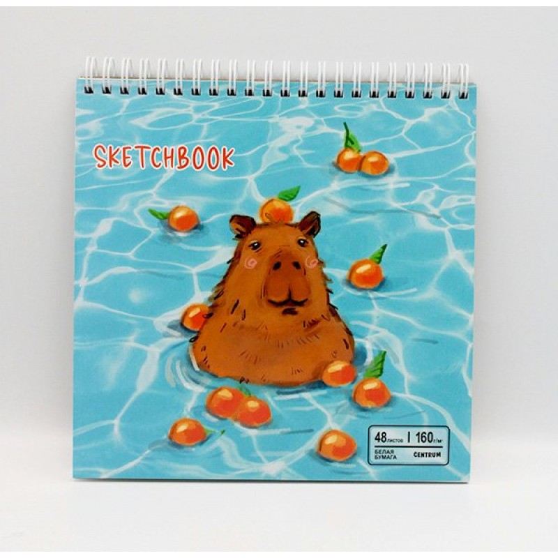 Скетчбук 190*190 спираль Капибара, жесткая подложка на гребне, блок 160 г/м2 Centrum