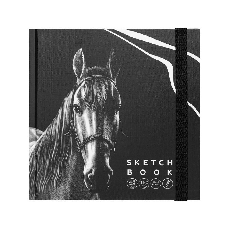 Скетчбук сшивка 48л. BLACKSOFT , 7БЦ, матовая ламинация, ляссе, лен, резинка, Проф-Пресс
