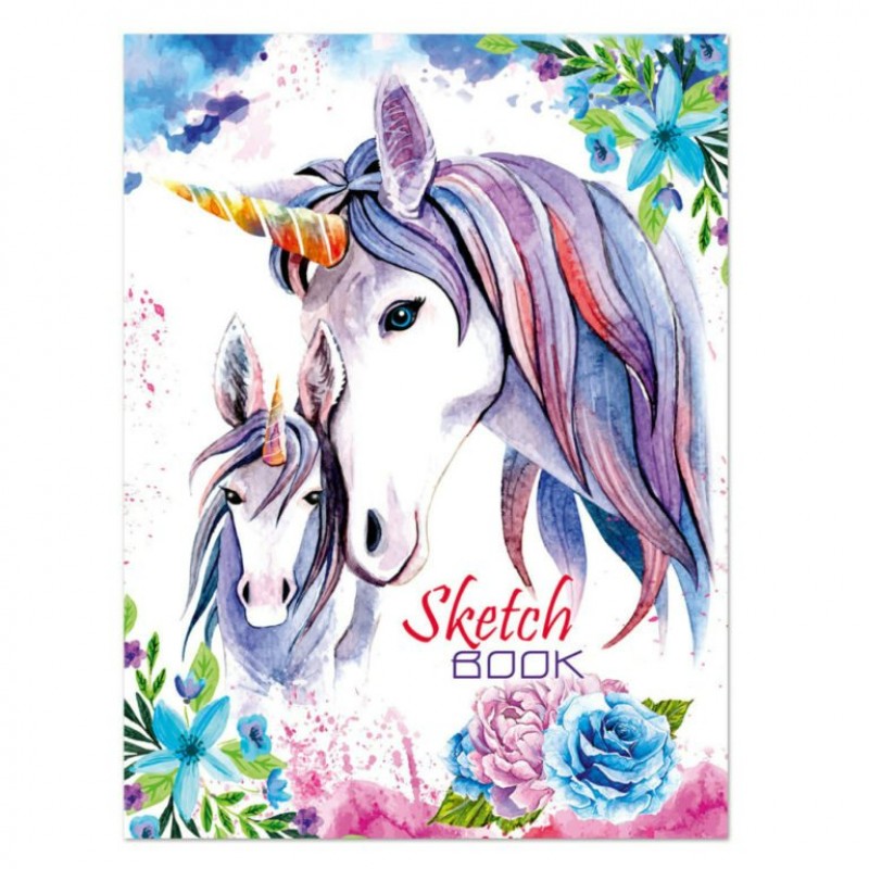 Скетчбук А5 склейка для зарисовок лак Единорог 36л Альянс