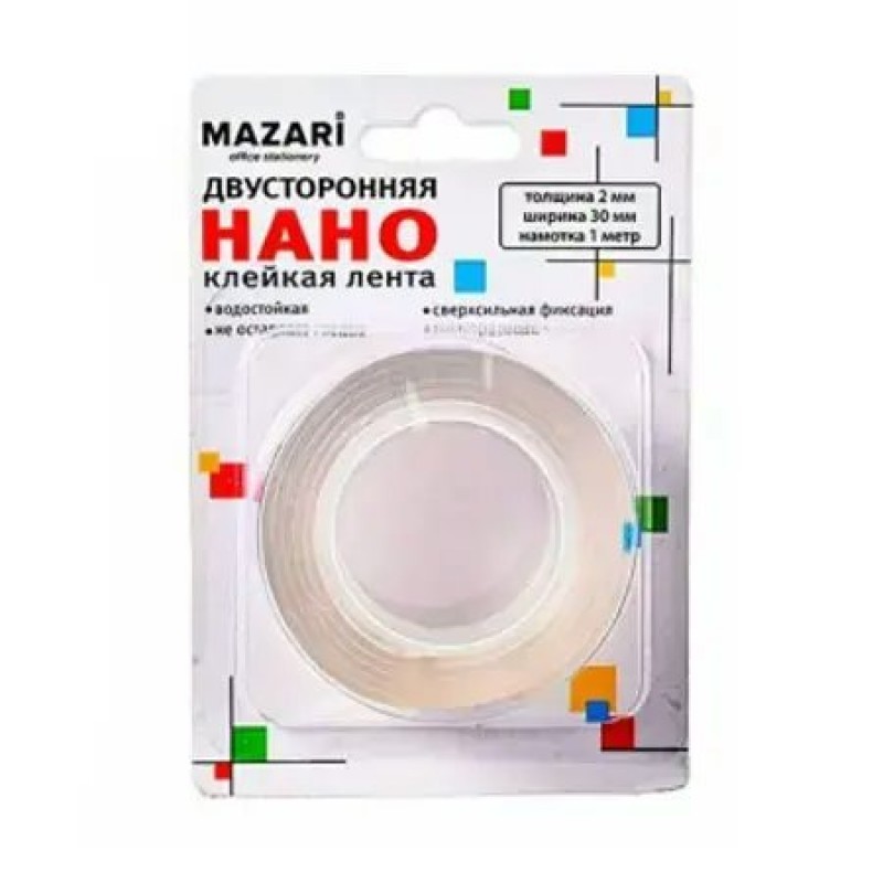 Скотч 30мм.*1м. прозрачный (лента клейкая двусторонняя ) НАНОСКОТЧ, толщина 2мм. Mazari