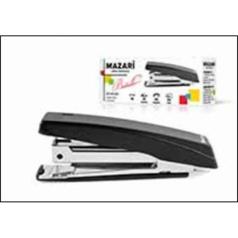 Степлер №10 BESTSELLER, 12 листов, с антистеплером, ЧЕРНЫЙ, пластиковый Mazari