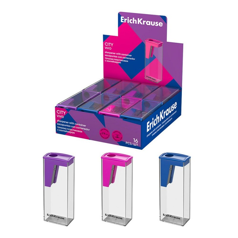 Точилка пластиковая 1 отверстие "City, Vivid" с контейнером, Erich Krause
