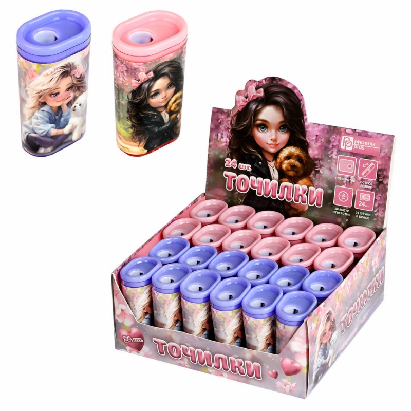Точилка пластиковая 1 отверстие ВЕРНЫЕ ДРУЗЬЯ,с контейнером Феникс