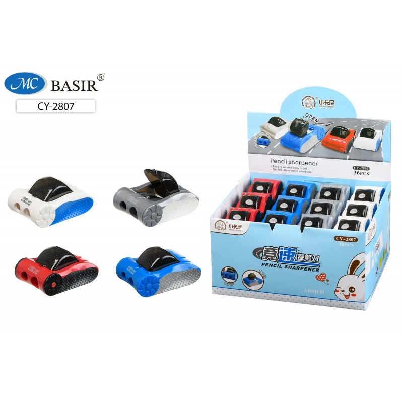 Точилка пластиковая 2 отверстия "МАШИНА" с контейнером, с откидной крышкой, BASIR