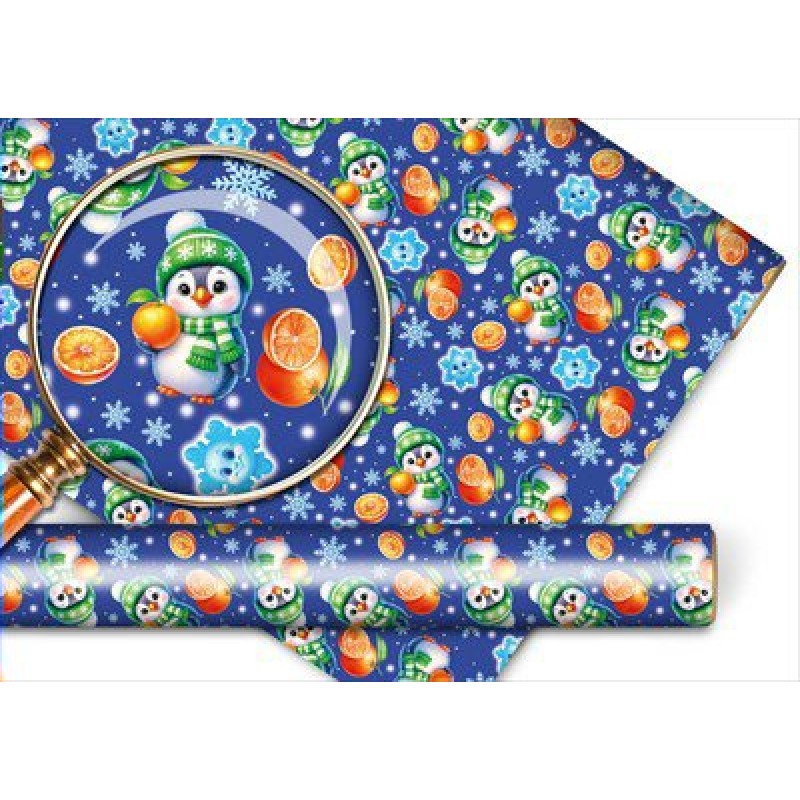 Упаковочная бумага "Пингвинёнок с апельсином" 974х674мм