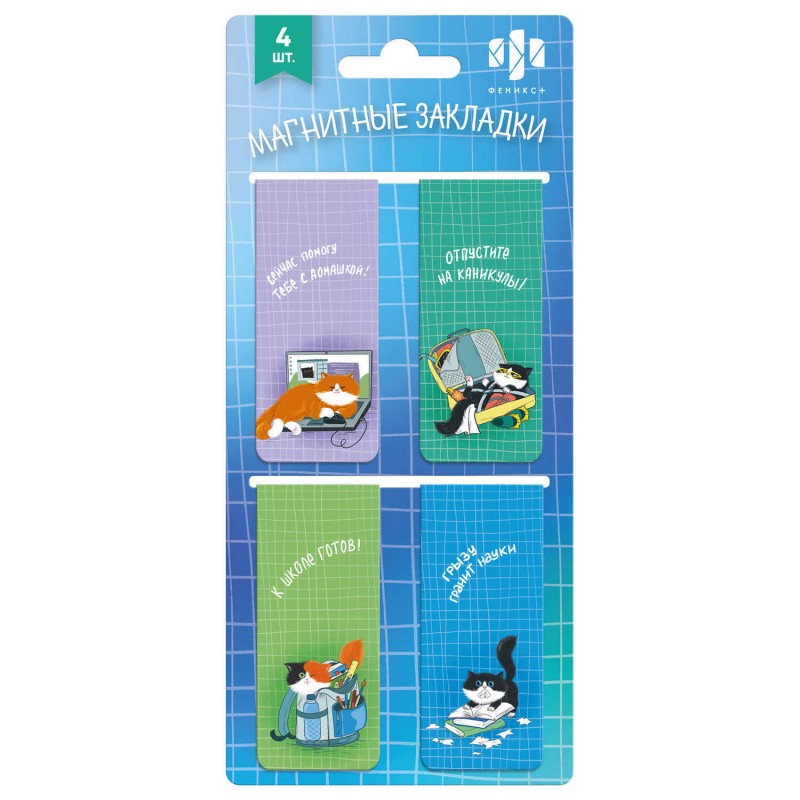 Закладка для книг магнитная Набор 4шт.25х58 мм, ЖИЗНЬ КОТА Феникс
